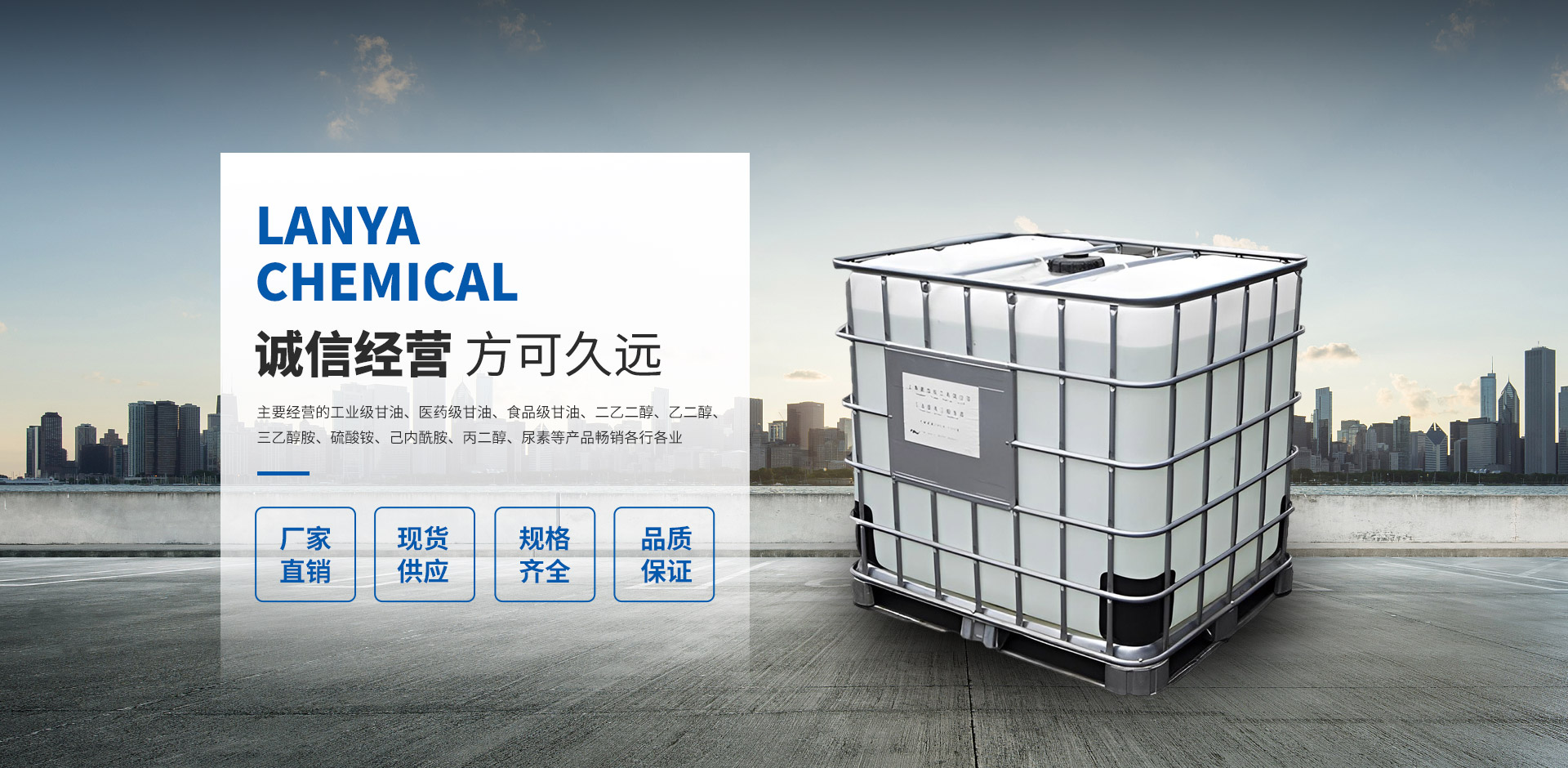 常州藍亞新材料科技有限公司是一家集技術(shù)研發(fā)、技術(shù)服務(wù)、生產(chǎn)加工、經(jīng)銷批發(fā)為一體的化工經(jīng)營企業(yè),擁有完整、科學(xué)的質(zhì)量管理體系,以雄厚的實力、低廉的價格,優(yōu)良的服務(wù)與多家企業(yè)建立了長期的合作關(guān)系。我們有很廣泛的商品信息網(wǎng)絡(luò),合作伙伴遍及世界各地,我們在“質(zhì)量為先”的經(jīng)營理念指導(dǎo)下,經(jīng)過全體員工的不懈努力,以經(jīng)取得了令人矚目的成績,并擁有一支業(yè)務(wù)精通、操作能力強的骨干隊伍。公司實力雄厚,重信用、守合同、保證產(chǎn)品質(zhì)量,產(chǎn)品品種齊全、價格合理,以多品種經(jīng)營特色和薄利多銷的原則,贏得了廣大客戶的信任。 藍亞化工,主要經(jīng)營的工業(yè)級甘油、醫(yī)藥級甘油、食品級甘油、二乙二醇、乙二醇、三乙醇胺、硫酸銨、己內(nèi)酰胺、丙二醇、尿素等產(chǎn)品暢銷各行各業(yè),在各大企業(yè)當(dāng)中享有較高的地位。公司與多家加工廠、零售商和代理商建立了長期穩(wěn)定的合作關(guān)系。本公司的二乙二醇、工業(yè)級甘油、三乙醇胺等液體散裝有機化學(xué)品品種齊全、價格合理,廣泛用于各行各業(yè)。 公司位于目前中國具活力的長江三角洲地區(qū)有發(fā)展?jié)摿Φ某鞘小V荩乩砦恢玫锰飒毢瘢懡煌ū憷?